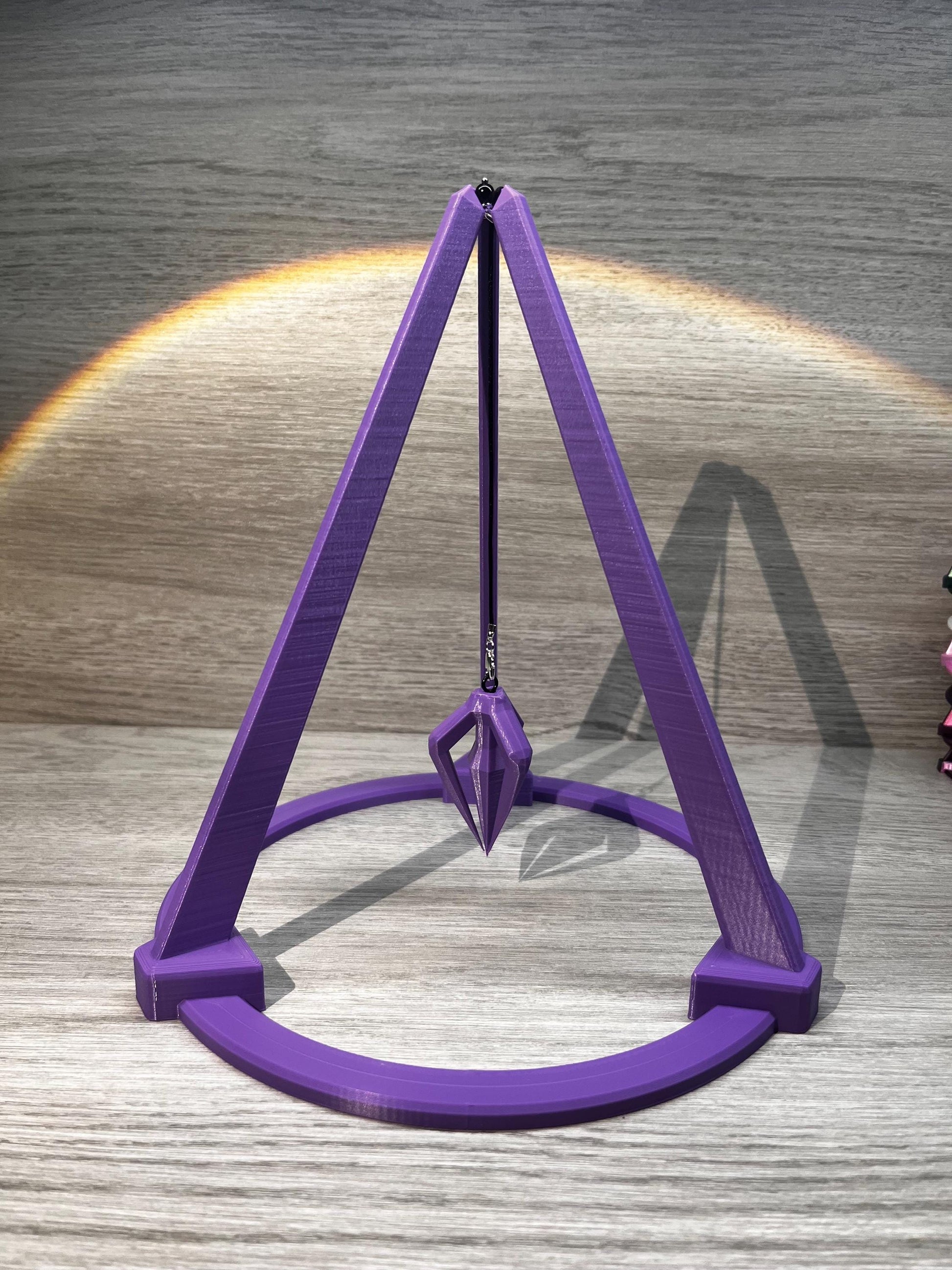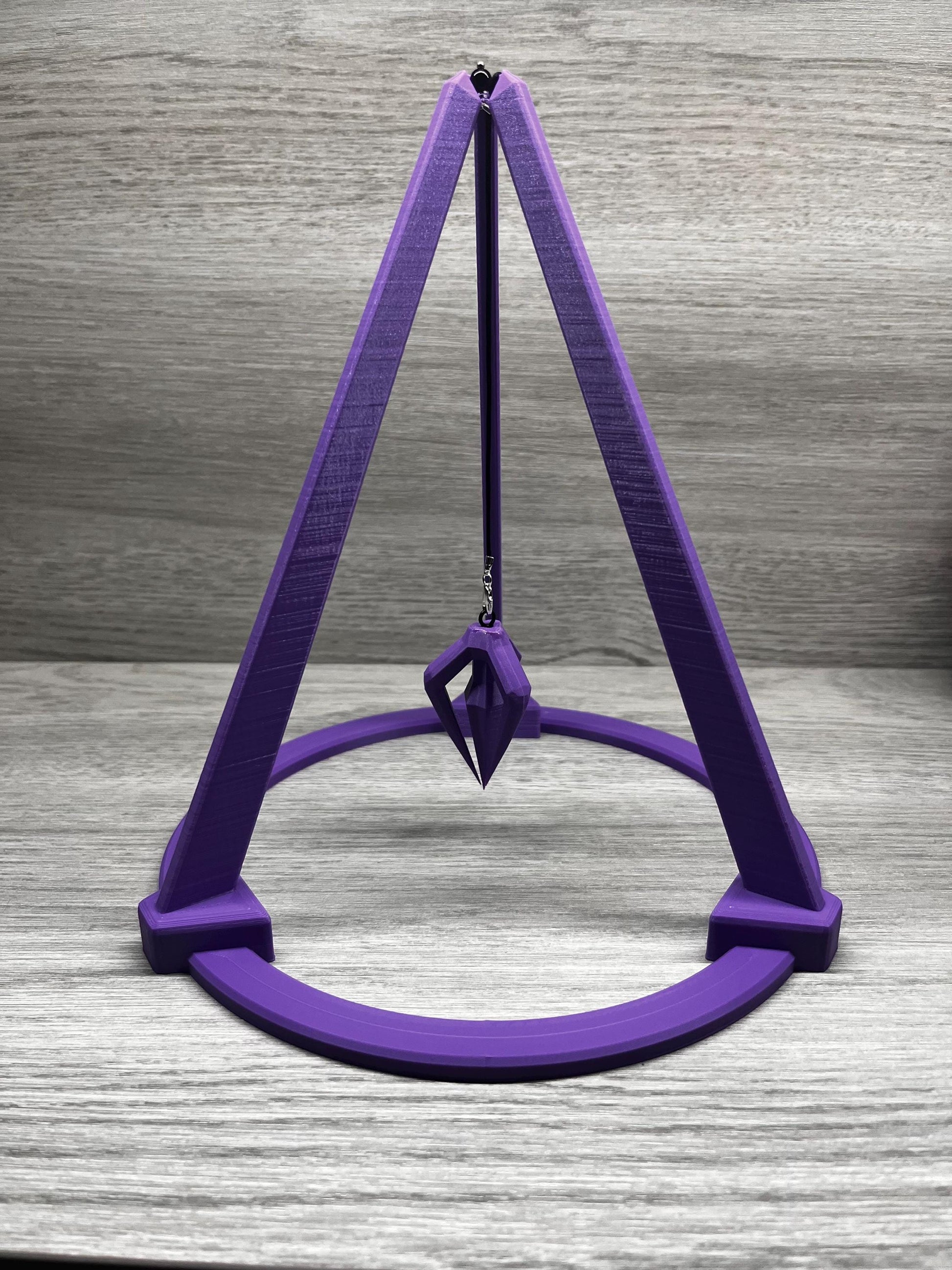 Open Base 3D Printed Tripod Stand and Pendulum. 8 inches wide by 10 inches tall.